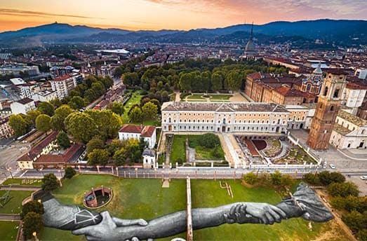 Diese Worte stammen von Saype, dem französisch-schweizerischen Künstler und Maler hinter Beyond Walls, dem Land-Art-Projekt, das am 1. Oktober 2020 in Turin startete. Das Projekt wird von der Lavazza Group in Zusammenarbeit mit der Stadt Turin und den Königlichen Museen unterstützt.