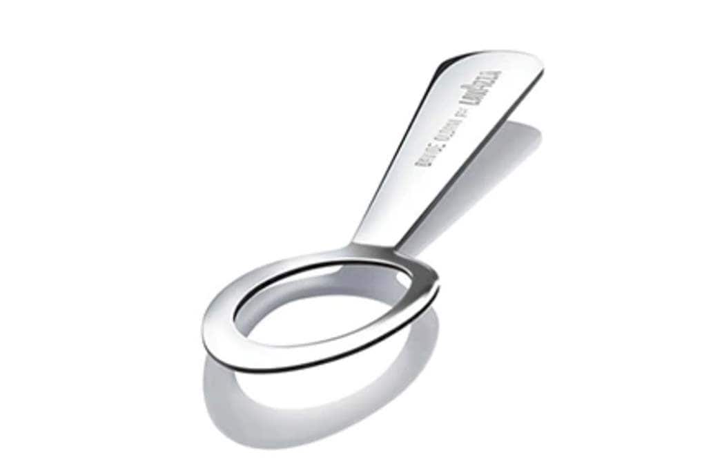 Der spanische Designer Toni Segarra entwarf den gelochten Kaffeelöffel exklusiv für Èspesso, den ersten festen Kaffee in der Geschichte. Das Loch in der Mitte hebt die feste Textur von Èspesso hervor.