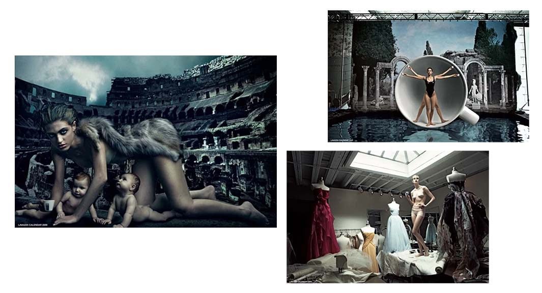 Der unverwechselbare Stil von David LaChapelle kommt im Lavazza Kalender 2002 zweifelsohne zum Vorschein. Seine surreale und ironische Darstellungsweise sowie knallige, leuchtende und satte Farben führen oft zu extravaganten Fotos im Barockstil, sodass er auch als der Fellini der Fotografie bezeichnet wird.