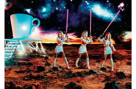 Im Kalender für 2004 geht die Espresso-Tasse in den Orbit und Le Gouès, der für diese Ausgabe auserkorene Fotograf, bildet eine Welt aus Kaffee und Zucker nach, die vage von der Pop- und Sci-Fi-Symbolik der 60er- und 70er-Jahre inspiriert ist. Die intergalaktische Reise führt uns zu einem physischen und mentalen Raum am Rande der Phantasie. Thierry Le Gouès ist vor allem als Modefotograf und Schöpfer renommierter Werbekampagnen bekannt. Er zeichnet sich durch zwei Werke der bildenden Kunst aus: Soul, inspiriert von Subsahara-Afrika, wo weibliche Aktdarsteller Skulpturen aus Ebenholz und Licht sind, und Popular, das seinen Betrachtern eine neue Vision von Kuba vermittelt.