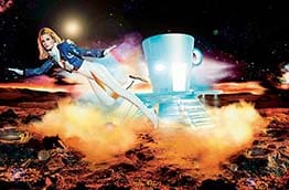 Im Jahr 2015 wurde der italienische Espresso mit an Bord der Internationalen Raumstation genommen. Zusammen mit der italienischen Raumfahrtagentur (ASI) entwickelten Lavazza und Argotec die ISSpresso, die erste Kaffeemaschine im Weltraum. Dies war ein wahrgewordener Traum, denn Thierry Le Gouès hat im Kalender für das Jahr 2004 Kaffee im Weltraum abgebildet.